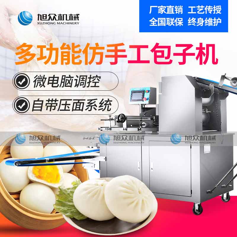 XZ-290A智能型卷面包子機,仿手工智能包子機。操作簡單、精準控制、快速成型、模擬人工。好機器,表里如一,專注品質機器,客戶現場試機。一臺包子機輕松解決手工和面/包餡/人工效率低,用人成本高等一系列問題。